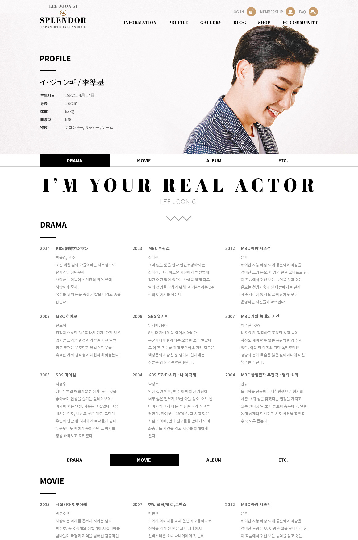 이준기 일본 공식 웹사이트 SPLENDER 디자인